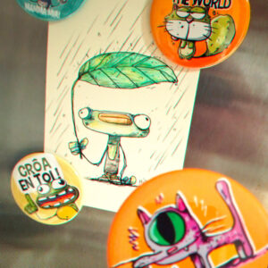 Magnet collector de 56mm, fait à la main et assemblé avec des matériaux durables. Idéal pour un coup de pouce positif sur le frigo ou le tableau d’idées. Soutenez le fanzine !